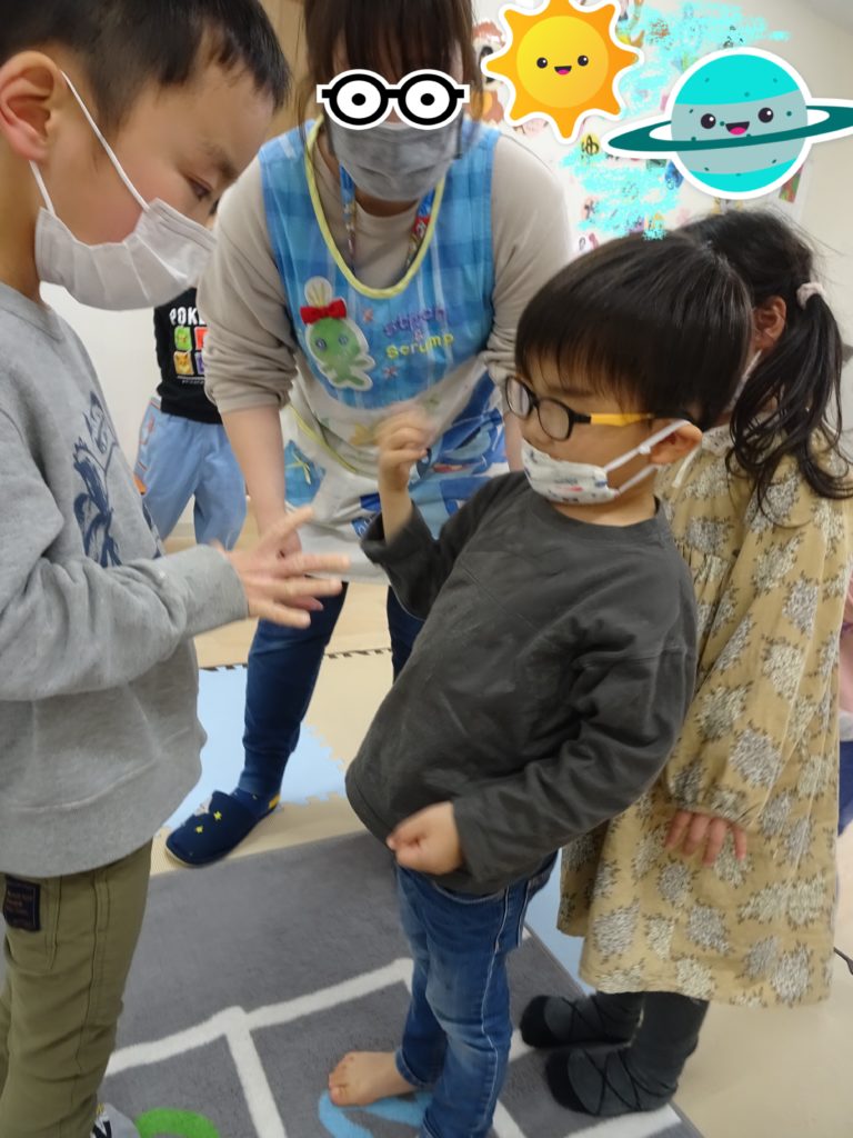 3月8日(火) 今日は集団遊びで“沈没ゲーム”をしました(*^^*) まずは先生の説明をしっかりと聞きます。 「○○色の島が沈没するぞーー!!」と言われたら サメに咬まれないように気をつけながら別の島に移動。 「○○色の […]