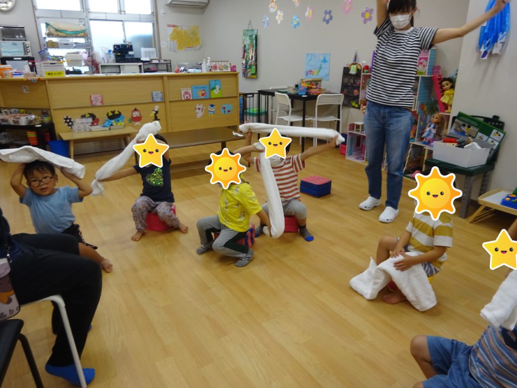 8月2日(火) 【集団療育】タオル体操 タオルを使って、柔軟やバランス遊びに取り組みました! まずはタオルを広げ、くるくる巻いて太いうどんを作り、左右に振って体を伸ばす柔軟から。子どもたちからのリクエストでゲゲゲの鬼太郎 […]