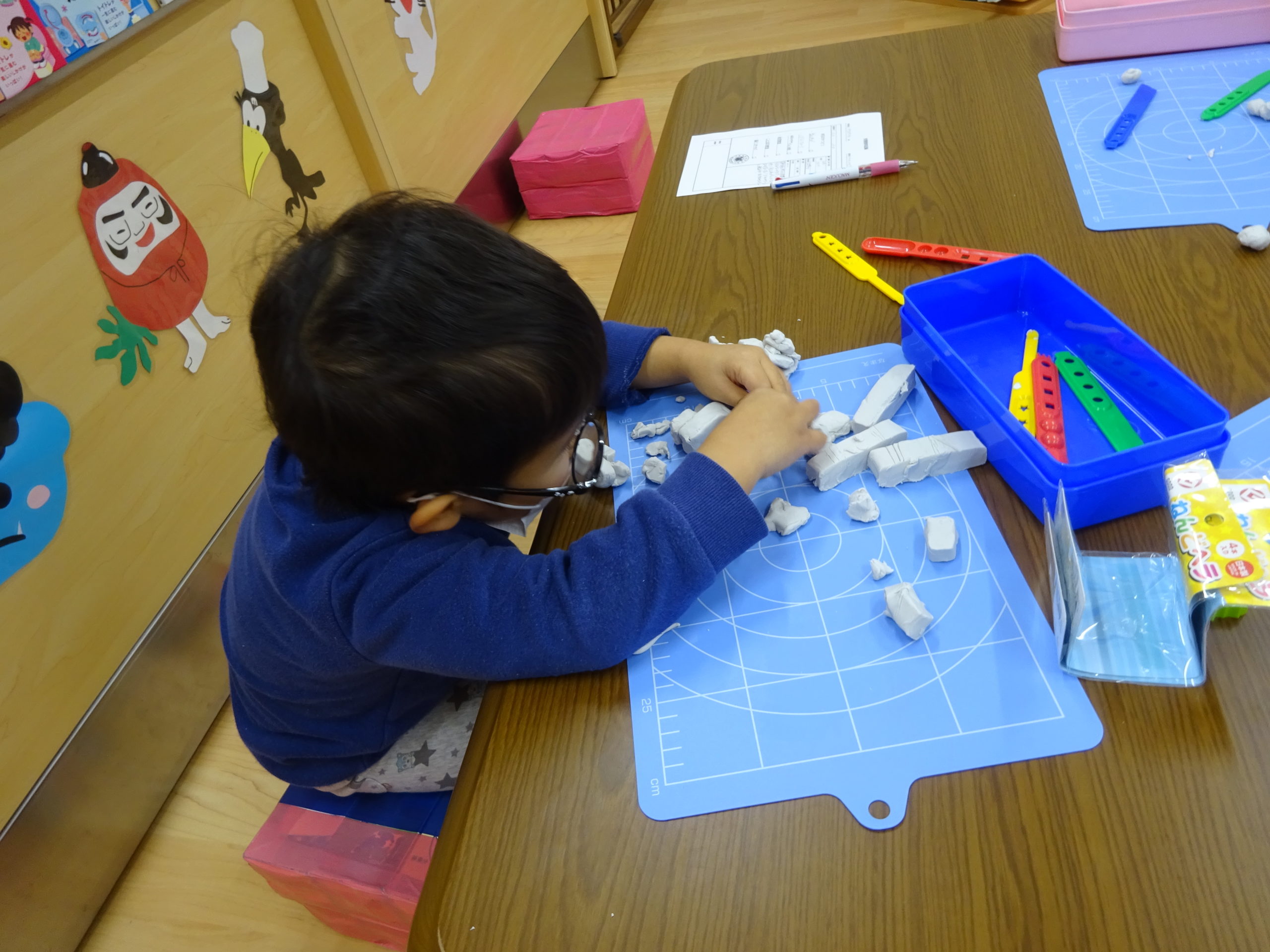 昨日は子どもたちの提案から 「粘土あそび」をしました。 事前に長く切った粘土を作って粘土板に置いておくことで 小さく切られた粘土を思い思いに並べ 「電車ができた~」 「クリスマスツリーだよ!」...と 構成あそびも楽しみ […]
