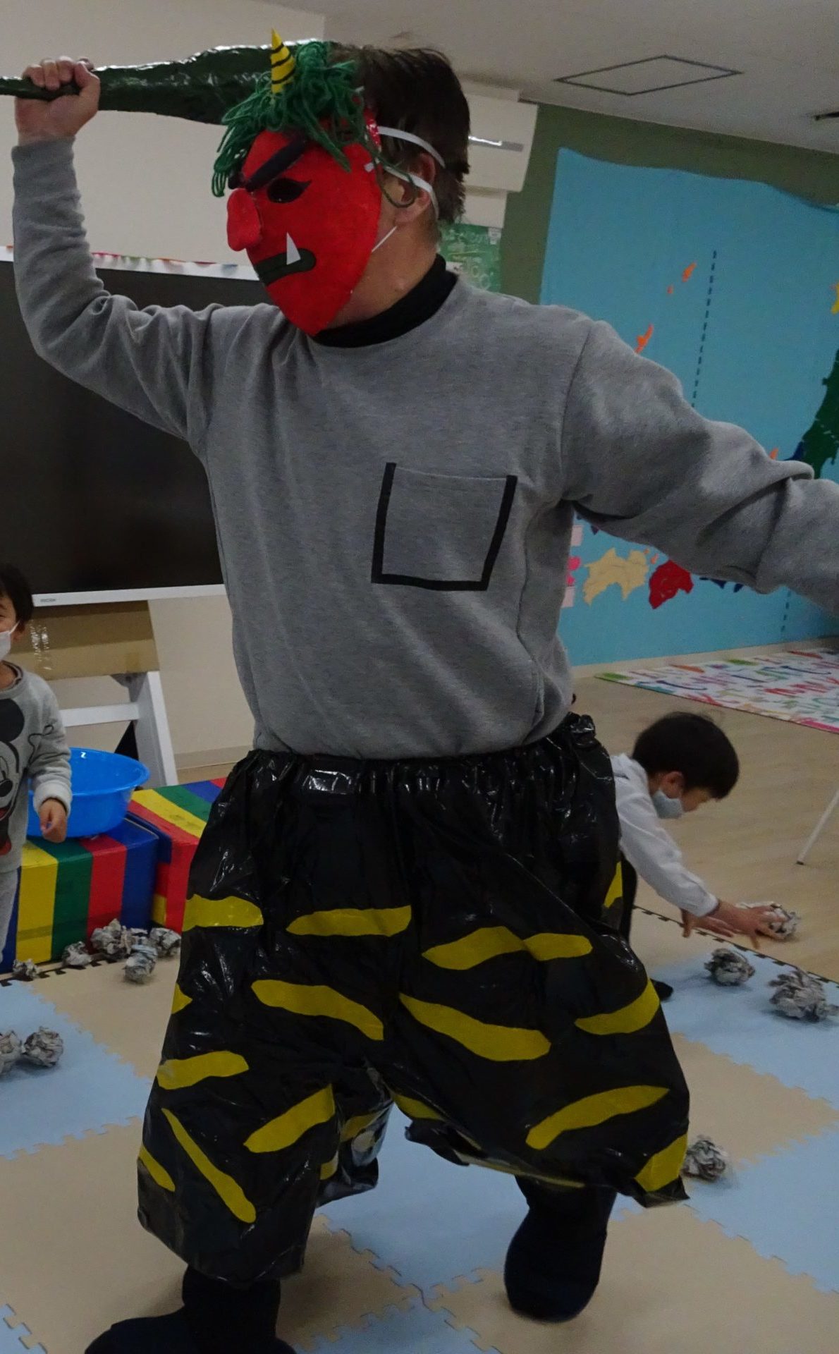 今日は節分と言うことで豆まきをしました。 おやつを食べ終わってから みんなで新聞紙を丸めて豆を作って準備万端(^▽^)/ 「鬼さん来なかったらこの新聞紙何に使おうね」 など話しながら過ごしていると 鬼が「鬼だぞ~!!!! […]