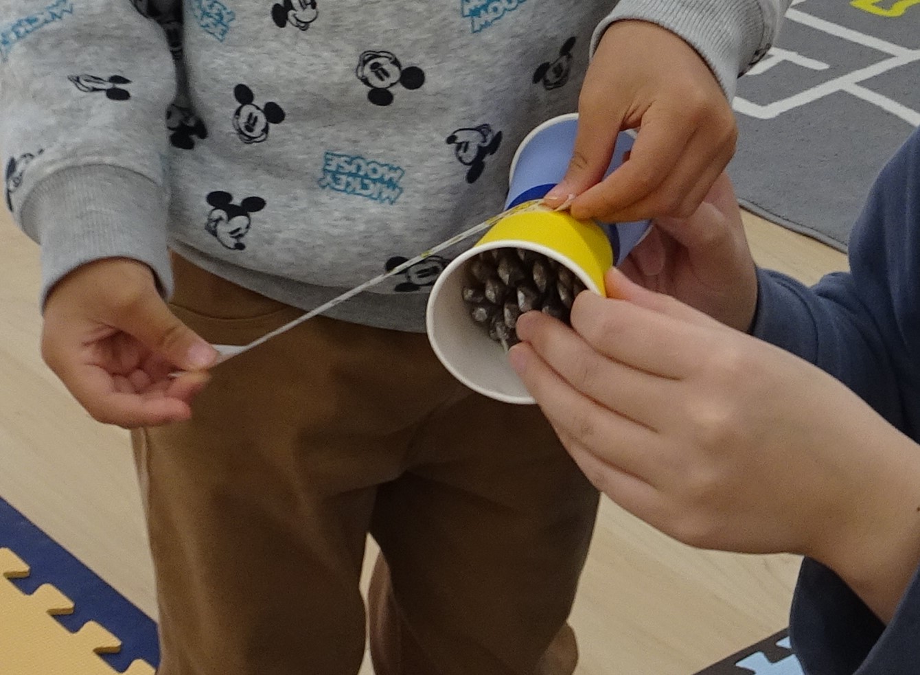 今日はけん玉作りをしました☆彡 紙コップの底を引っ付け、折り紙を貼り付け カラフルなけん玉(^^♪ 玉は、まつぼっくりにカラースプレーをかけました✨ 子ども達はけん玉に、 マスキングテープで自由にデザイン(*’ […]