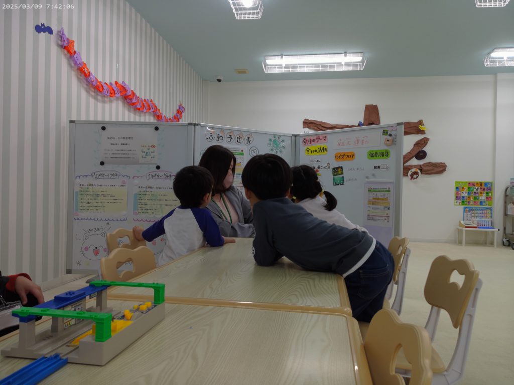 2025年10月28日(火) 今日はSST劇場がありました。絵本での読み聞かせにておもちゃのお片付けについて学びました。 その後はビンゴ形式でお片付けゲームをしました。ビンゴシートに書かれているおもちゃを片付けるとマスに […]