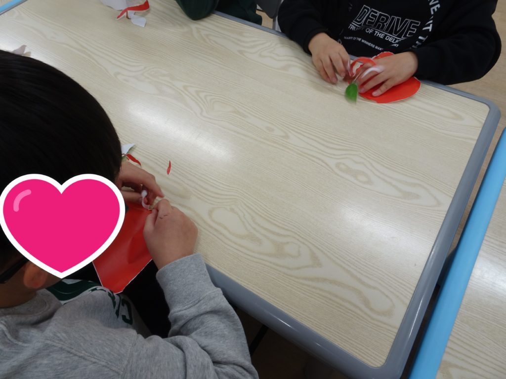 令和年3月2日(月) 今日は、りんごの皮むきゲームを行いました。りんごのイラストが描かれた紙をリンゴの皮むきのように細く破っていきました。10分間でどれだけ長くちぎれるのか挑戦しました。途中で破れてしまっても怒らずに何 […]
