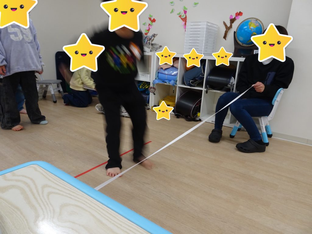 今日は、ゴム跳びをしました。 膝の高さから始まり、太ももの高さ、腰の高さと上げていきどこまでの高さが飛べるのか挑戦しました。 飛ぶ高さを決めて「もう少し高くして」とか限界まで挑戦していました。逆にリンボーダンスのようにど […]