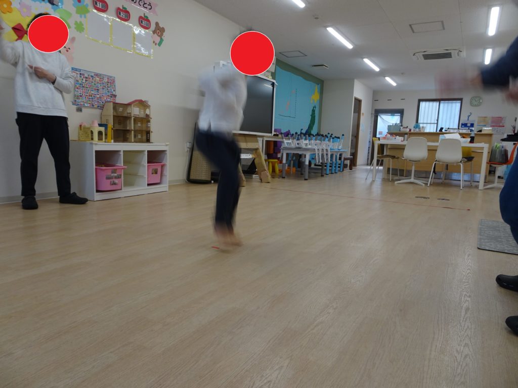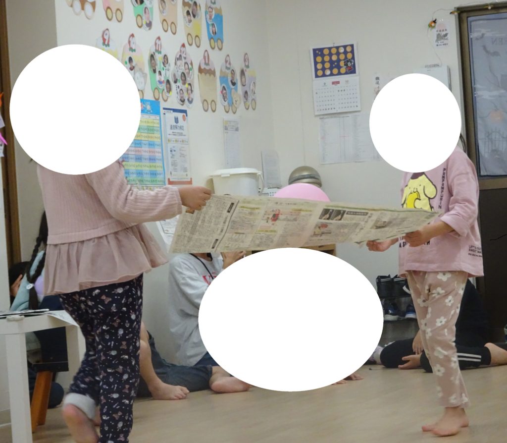 2025年10月23日(木) 今日の集団遊びは、風船リレーをしました。 ペアで新聞紙をもち、その上に置いた風船を落とさないように運びます。コーンをまわって、戻ってきたら次のペアに風船を渡します。 風船を落とさないように、 […]