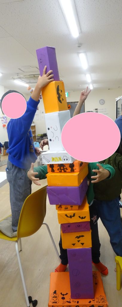 令和7年10月30日(木) 今日は子ども達でハロウィンの柄の箱を積み上げるゲームをしました。 子ども達で協力して積んだので自分よりも背が高くなってしまい椅子に乗らないと積めないぐらいの高さになりました。 箱を全部積んだ […]