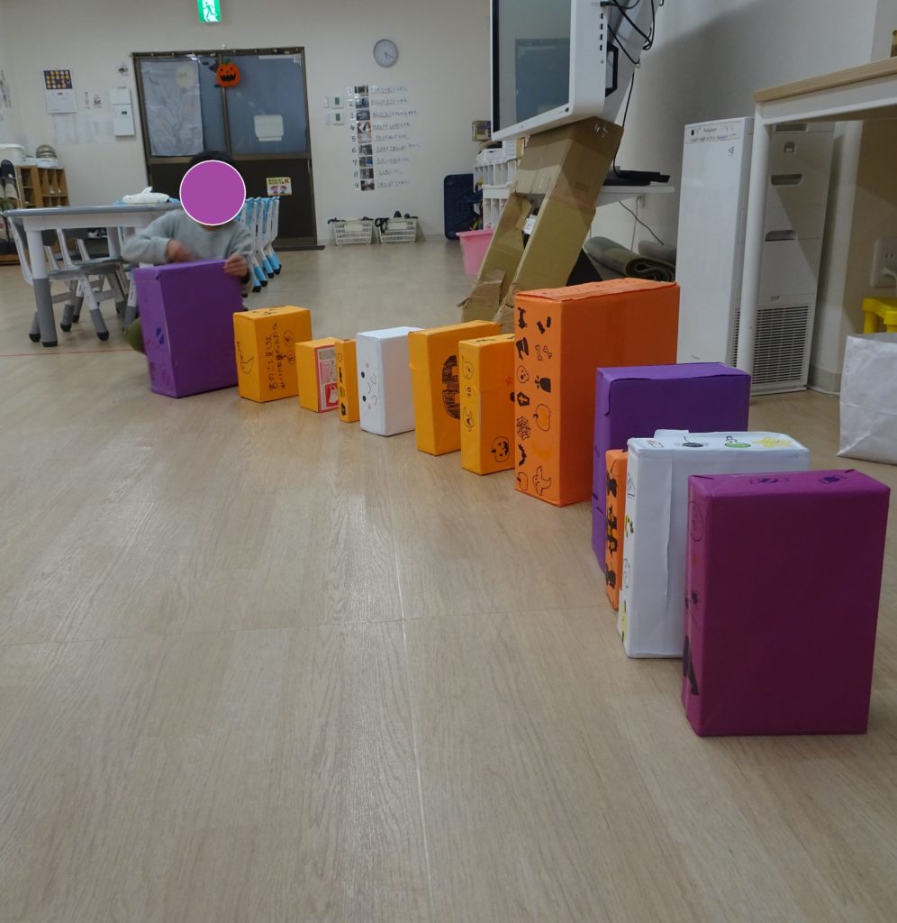 令和7年10月28日(火) ハロウィンのにまつわる絵が描かれた箱を積み上げるゲームを楽しみました。 数人の子ども達と協力して自分の背よりも高く積み上げたり、職員と制限時間内にどちらがより高く積み上げることができるのか競 […]