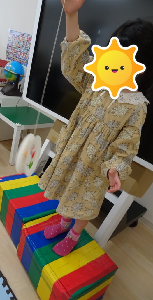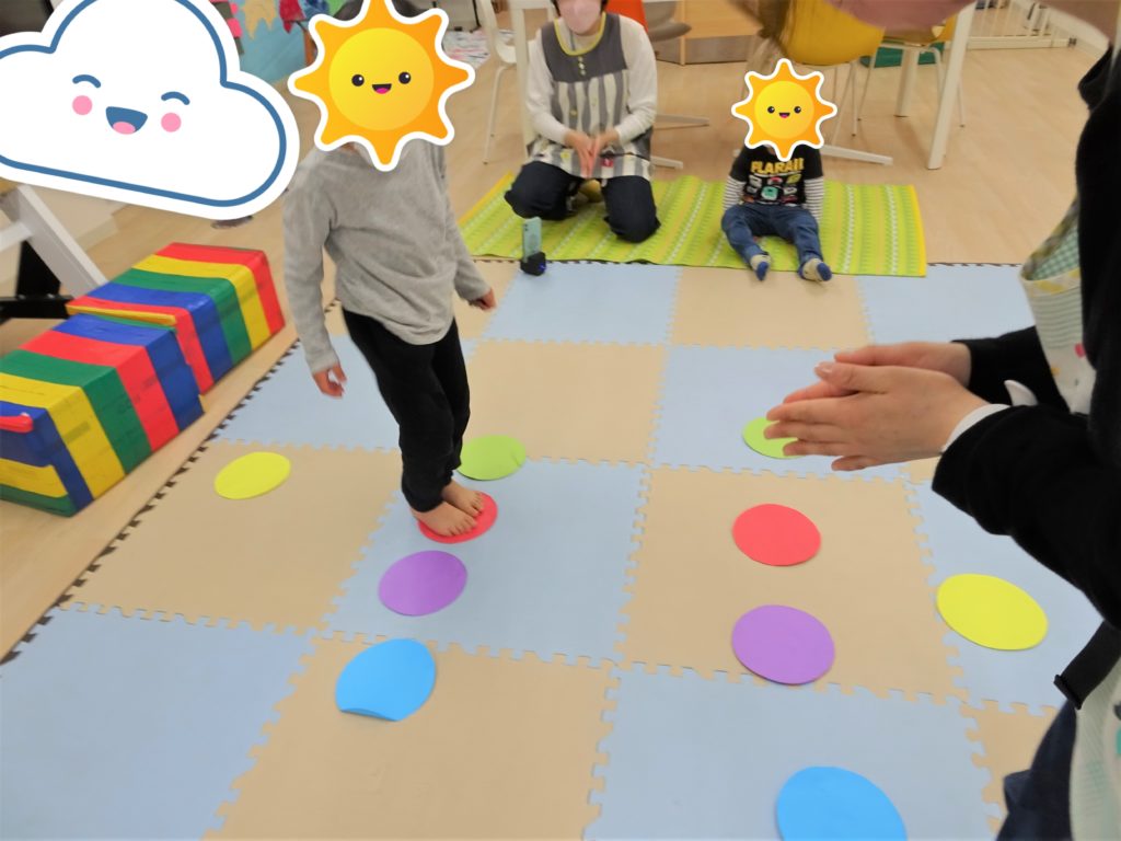 4月21日(木) ラウンドステップとは、、、 5色の丸の上を音楽に合わせてジャンプで跳び移る。 保育士の動くを模倣し、真似してもらいます! 音楽に合わせてリズムよく行うことがポイントです♪ この活動では体のバランス感覚や […]