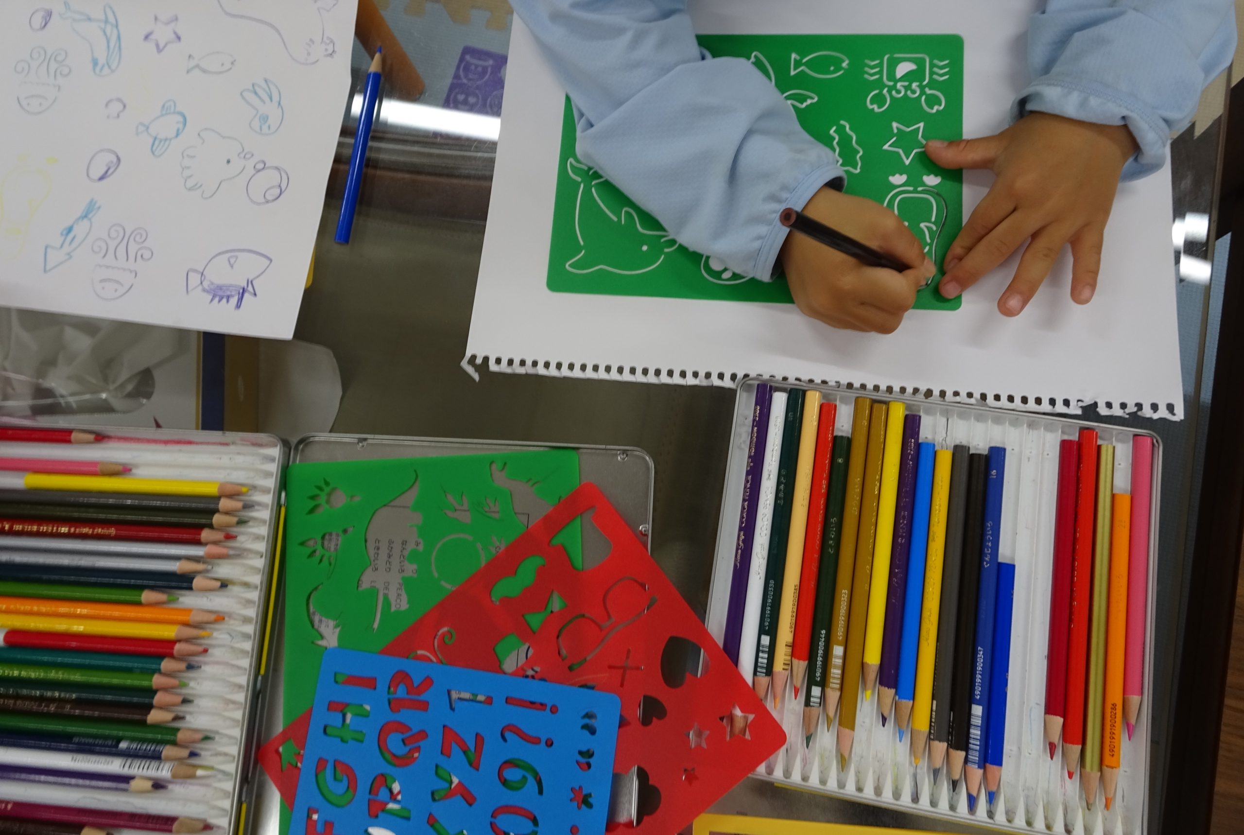 4月26日(火) 今日は、ステンシルアートで遊びました! 色鉛筆で隙間に色を塗っていくと素敵な絵の出来上がり♪ みんなとーっても上手でした!! 海の生物だから青系の色で統一したり、カラフルな虹を描いたりと工夫して描いてく […]