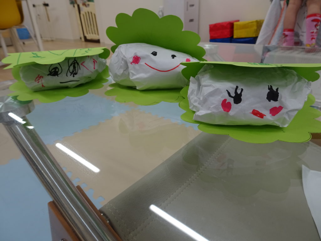 4月28日(木) 新聞紙と半紙を使って柏餅づくりをしました。 新聞紙のクシュッとした感触を感じ、 力いっぱい丸めることが出来ました!! お餅についてみんなで楽しく会話も広がり、 個性豊かな可愛らしい柏餅が完成しました。 […]