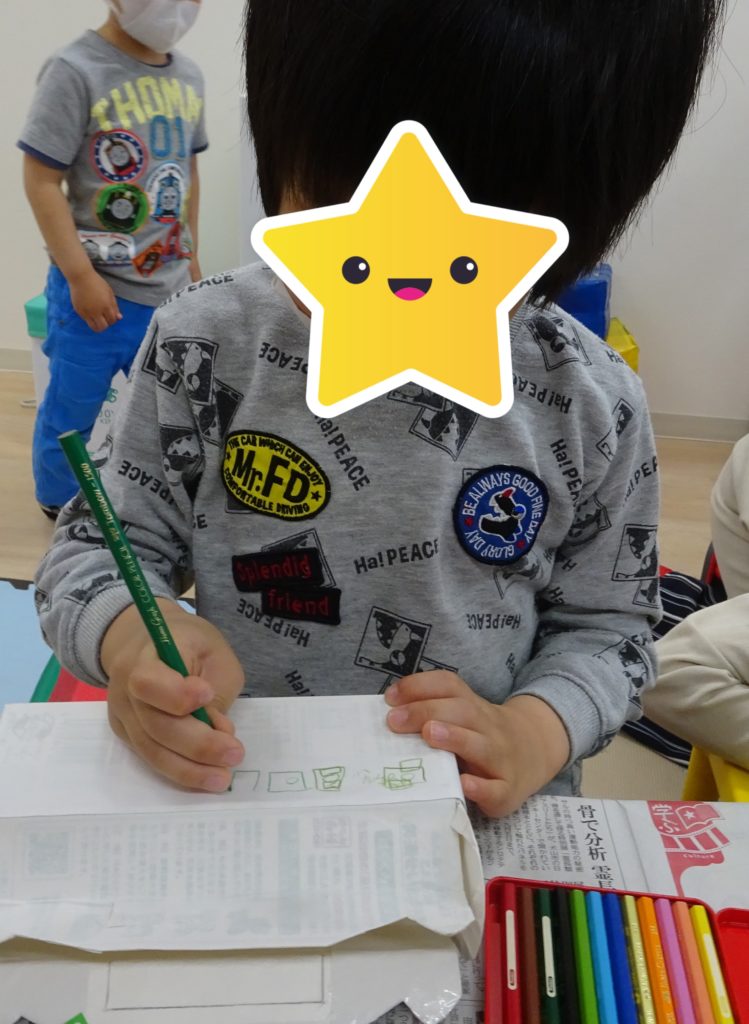 5月7日(土) 今日は折り紙でドーナツを作りました。 まずは、ドーナツを入れるための箱をみんなに絵を描いてもらいました! 大好きな貨物列車やバスの降車ボタンをいっぱい描いて、個性あふれるドーナツの箱ができあがりました^^ […]