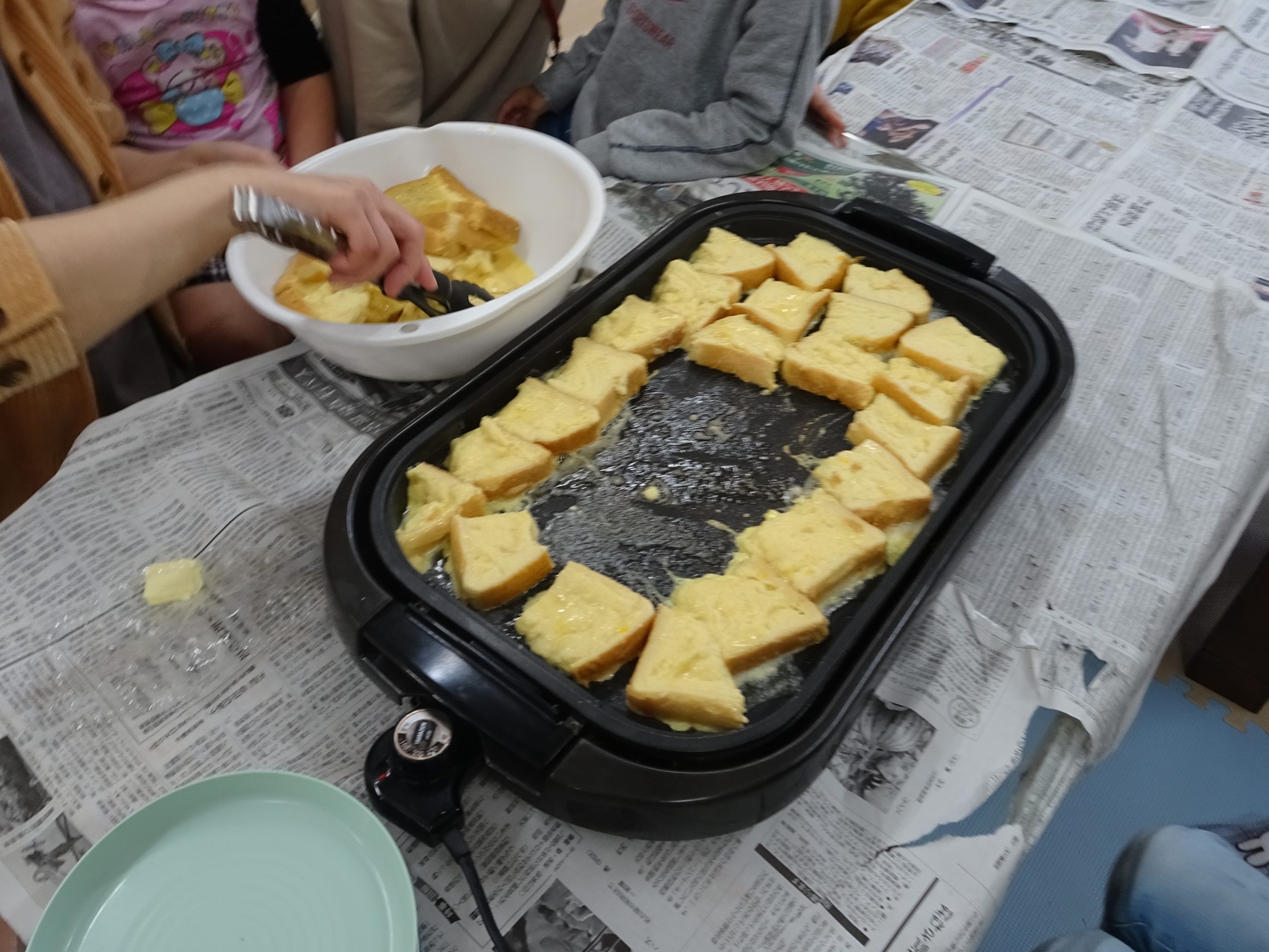 4月2日(土) 今日の午後は、みんなでフレンチトーストを作りました。 お料理の前には手洗いと消毒を行いました。 子ども達にはまず、包丁で食パンを4等分に切ってもらいました! はじめに先生がお手本を見せると、子ども達は「は […]