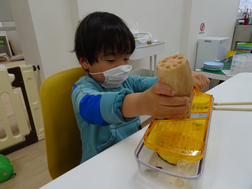 最近、平日企画の根菜チップス作りに取り組んでいます。 「今日はおやつを作るよ!」と、伝えると 「やったぁー!!」 と喜んでくれます(*^_^*) 子ども達にはレンコンやサツマイモをスライサーでスライスしてもらうお手伝い♪ […]
