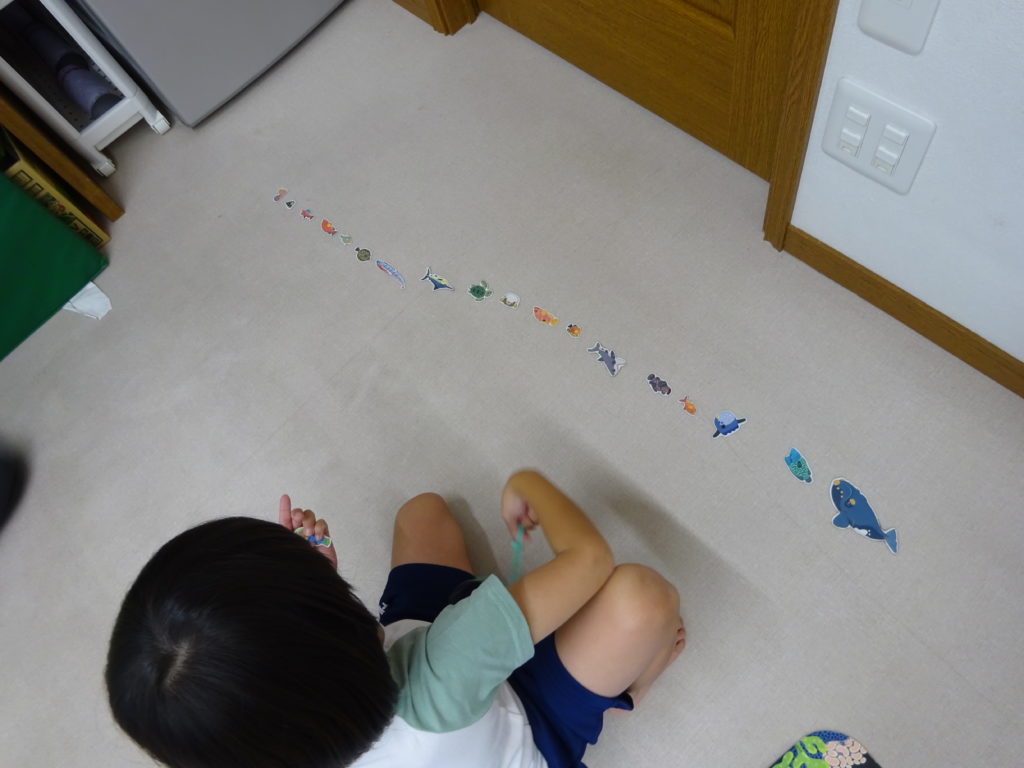R7、7月31日(木) 今日は釣竿で魚釣りが出来るマグネットbookで遊びました、本の上に魚を並べている時から楽し気で、準備が終わるとやる気満々に釣竿を構えていましたよ! 一人ずつ順番に釣りたい魚を狙って、どちらが多くg […]