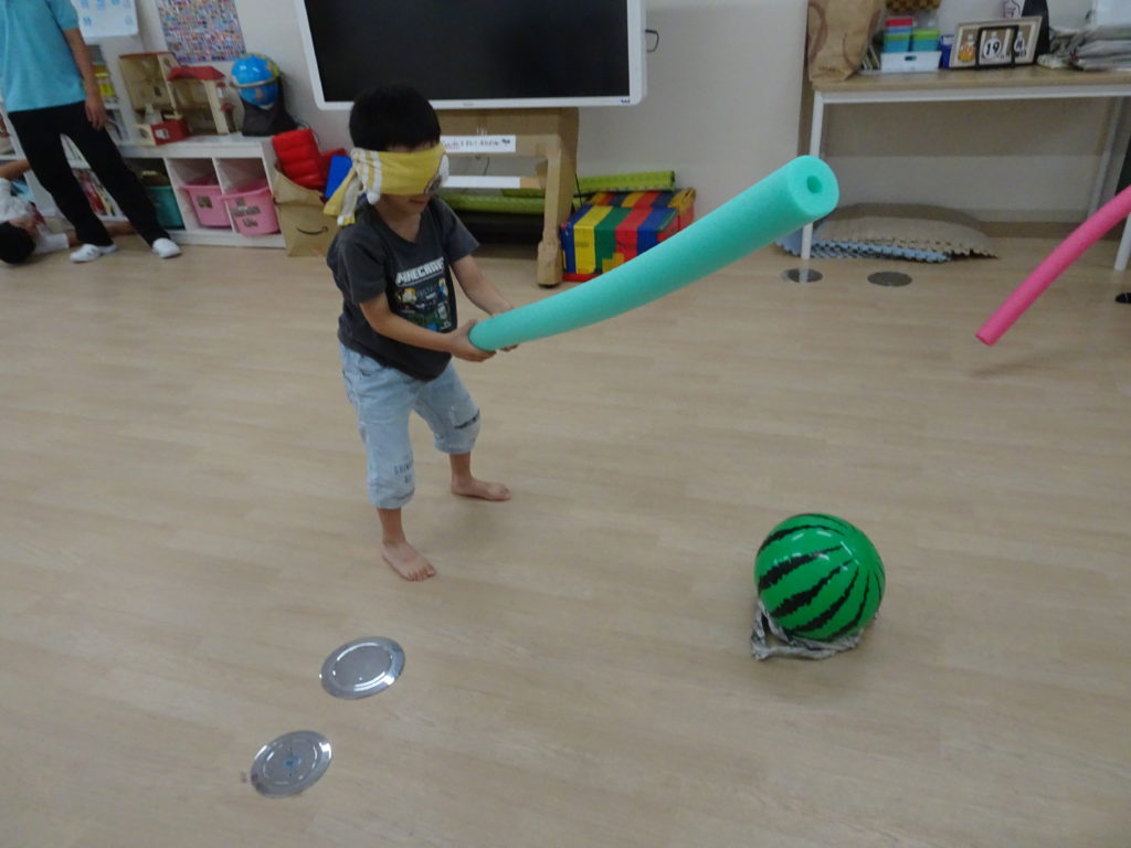 8月20日水曜日 天候が悪いことがあり今回はスイカのビーチボールを使ったスイカ割りゲームをみんなで楽しみました。スイカ割り自体が初めてと言うこともありとても興味津々に職員の説明を聞いたり目を隠してみんなの指示を頼りにお互 […]