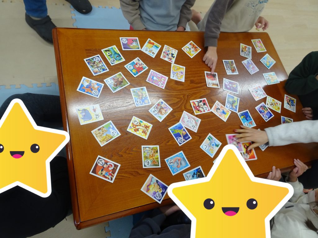 1月4日(木) 今年初めの活動は、かるた大会ということでかるたをしました。読まれる文を聞いて札を探しました。時には、子ども達が読み手なって文を読んでいました。子ども達の成長を感じる大会でした。