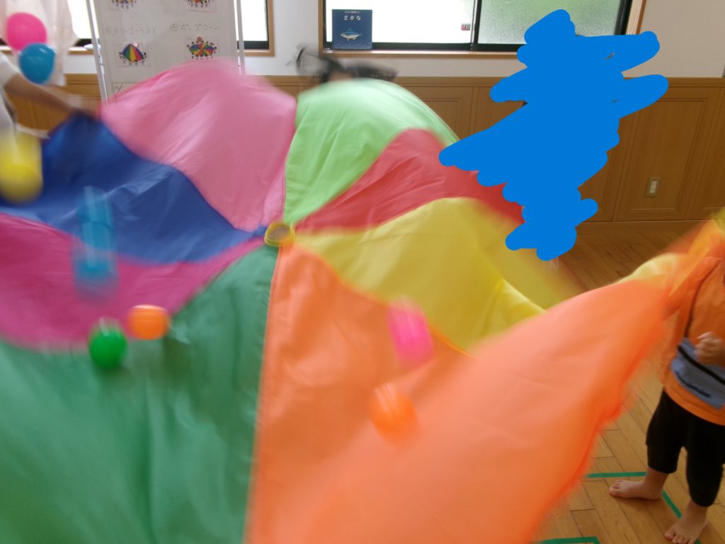 10月5日(土)今回、運動プログラムでパラバルーンをしました。大きな子や小さな子みんなが協力していろんな形を挑戦しました。バルーン皆でパタパタしてみたり、広げたり周ってみたりととても楽しんでいました。ボールがバルーンの上 […]