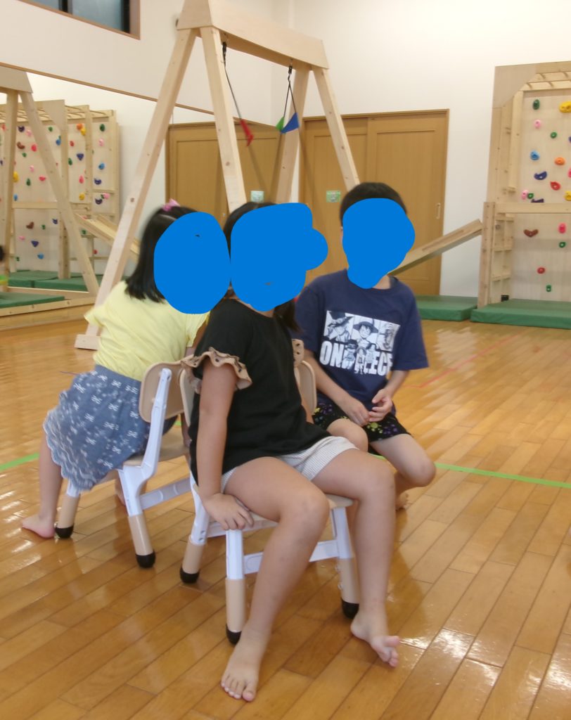 2024年9月4日(水) 今日の運動プログラムは”椅子取りゲーム”をしました。 やったことがある子どもたちが多く、音をよく聞いて音が止まったタイミングで座ることができていま した!椅子の数が少なくなってくると子どもたちも […]