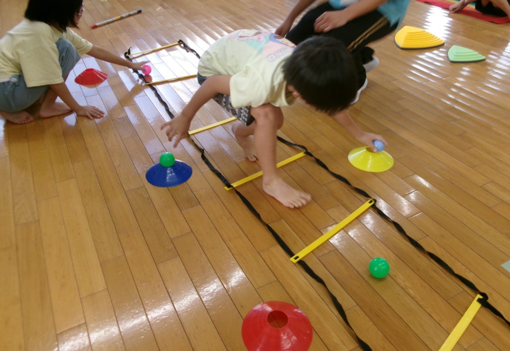 2024年9月11日(水)本日の運動プログラムは、『ラダー』をしました。 ゆっくり正確にステップをすることからはじめて徐々に早くを意識していきます。 はじめは1つ1つ正確に跳んでいくことから始めます。子どもたちは足元を見 […]