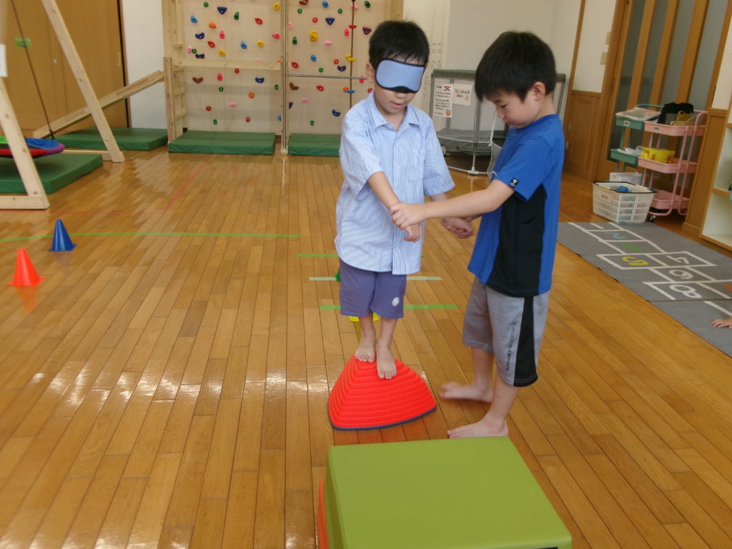 2024年7月30日(火) 今日は午前活動に目隠しゲーム、午後活動にハードルを行いました。 目隠しゲームでは、アイマスクで目を隠して障害物をよけていく内容です。 最初はスタッフと手をつないでチャレンジしましたが、2回目は […]