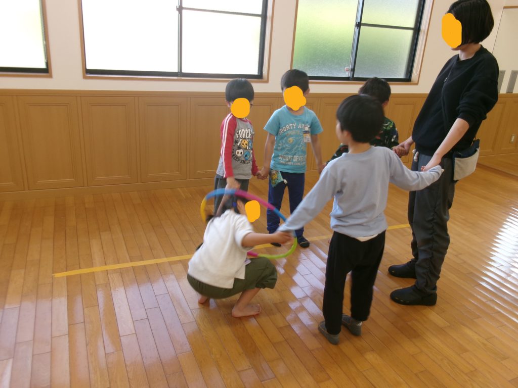 5月14日㈫ 少人数で手をつなぎ、輪になった状態でフラフープが一周できるのかチャレンジしました。スタッフが「絶対に手を放しちゃいけないよ~」と伝えると子どもたちは「分かった!」とやる気に!手を高く上げてみたり、しゃがんで […]
