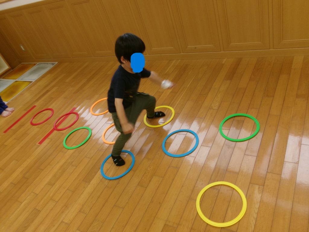 2024年4月26日(金) 運動プログラムはなじみのある「ケンケンパ」。ケンで片足になる時におっとっと…円からはみ出ないように踏ん張っていました。 後半はタイムアタックにも挑戦し、先生から提示された時間内に全員ゴールする […]