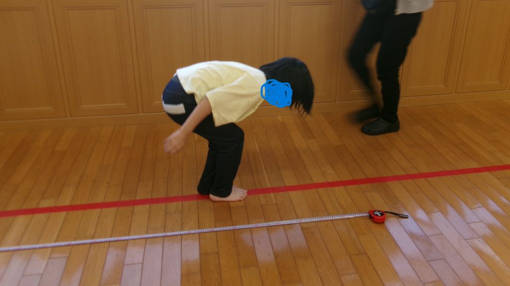 2024年5月8日(水)今日の集団運動は【立ち幅跳び】を行いました。 まずはスタート地点の線に足を揃えます。腕を大きく振り、足のバネを使って大きくジャンプ! みんな、着地した時に手を後ろに着いてしまわないように前傾姿勢を […]