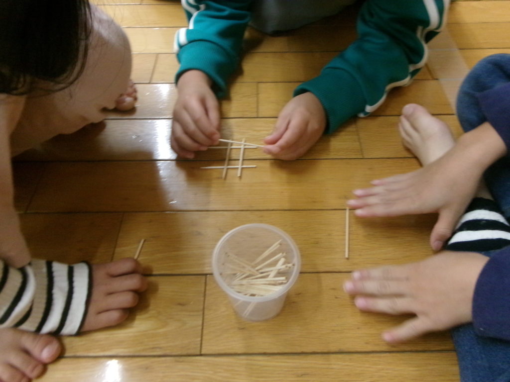 2025年10月31日(金) 活動はコグトレ、テーマは「指先を使う」でした。 3人一組になり、つまようじを井桁に1人1本ずつ、順番に積んでいきます。制限時間内にどれだけ積めるか競います。 なるべく高く積み上げるために、手 […]