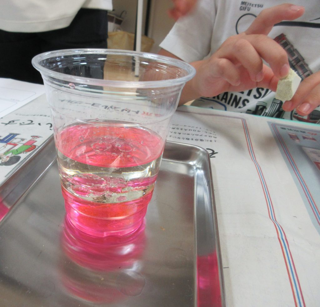 2025年8月21日(木) 今日は、炭酸マグマ実験をしました。 40~50度のお湯に色を付け、その上に油を入れます。そこに炭酸入浴剤を入れるとどうなるのかなという実験です。 各テーブルのグループごとに入浴剤をいれていざ実 […]
