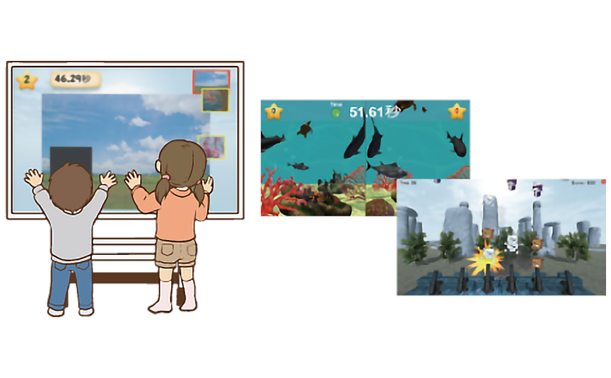 (※稲沢教室のみ)「CoCoRoMap」は、遊びながら注意力、視覚機能、社会性など、さまざまな能力を育てる大型タッチパネルです。一番の特徴は、全身を動かして遊べるということ。専用ソフト『タッチくん』には17種類以上ものゲームが入っているため、お子様も飽きることなく遊べます。